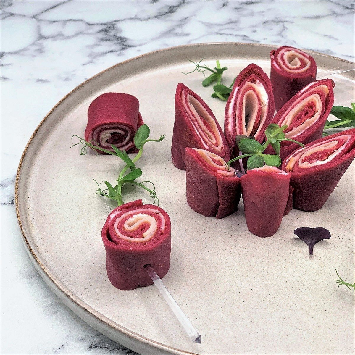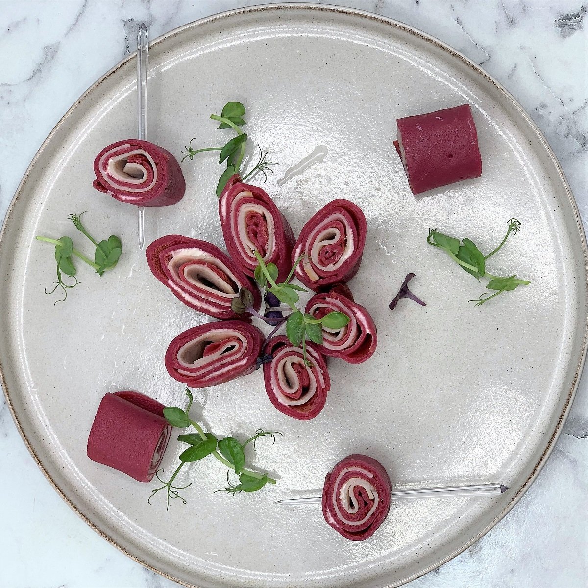 Hindi Fümeli Mini Krep Rulosu içerisinde Un, Pancar, Yumurta, Su, Ayçiçek yağı, Krem peynir, Hindi füme, Tuz ve Karabiber bulunmaktadır.