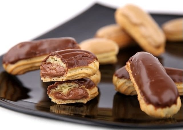 Mini çikolatalı ekler içerisinde tereyağı, un, yumurta, süt, şeker, vanilya, bitter çikolata bulunmaktadır.