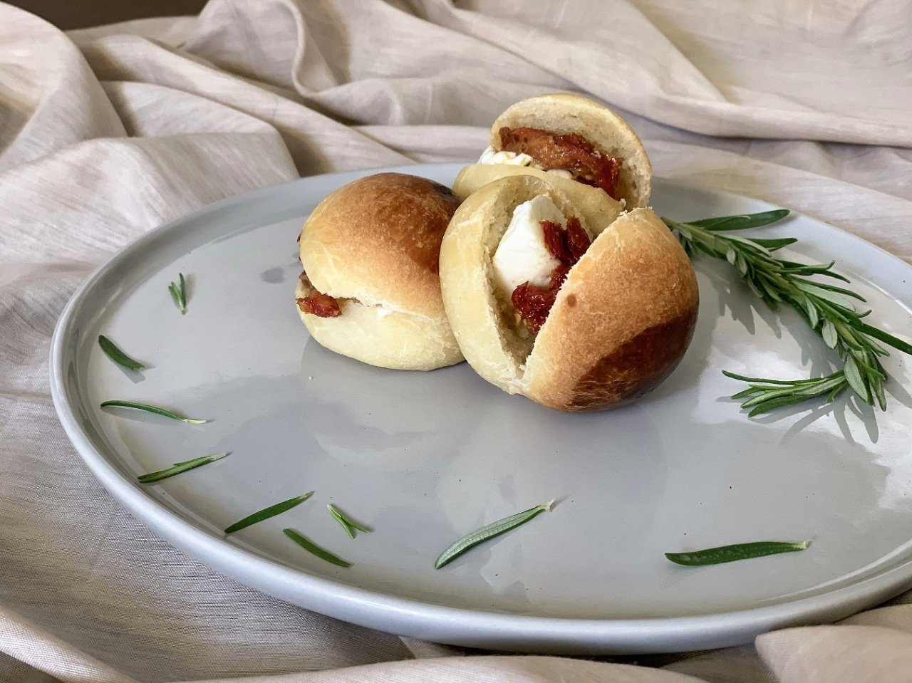 Mini Roll Sandviç içeriğinde Sütlü yumurtalı pastane ekmeği;
