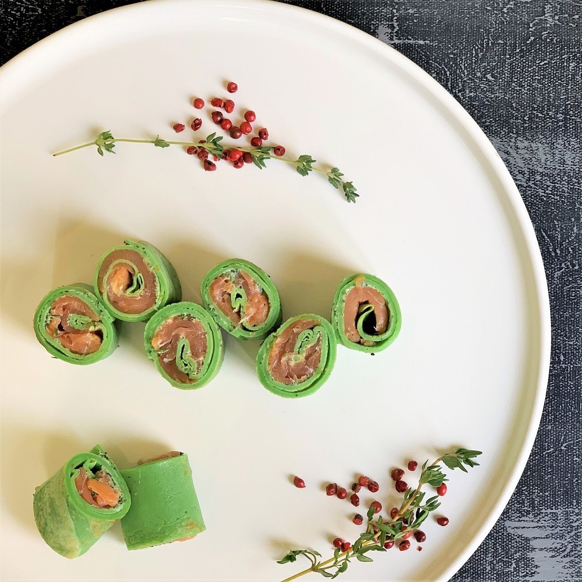 Somon Fümeli Mini Krep Rulosu içeriğinde Un, Maydanoz, Yumurta, Su, Ayçiçek yağı, Krem peynir, Somon füme, Tuz, Karabiber bulunmaktadır.